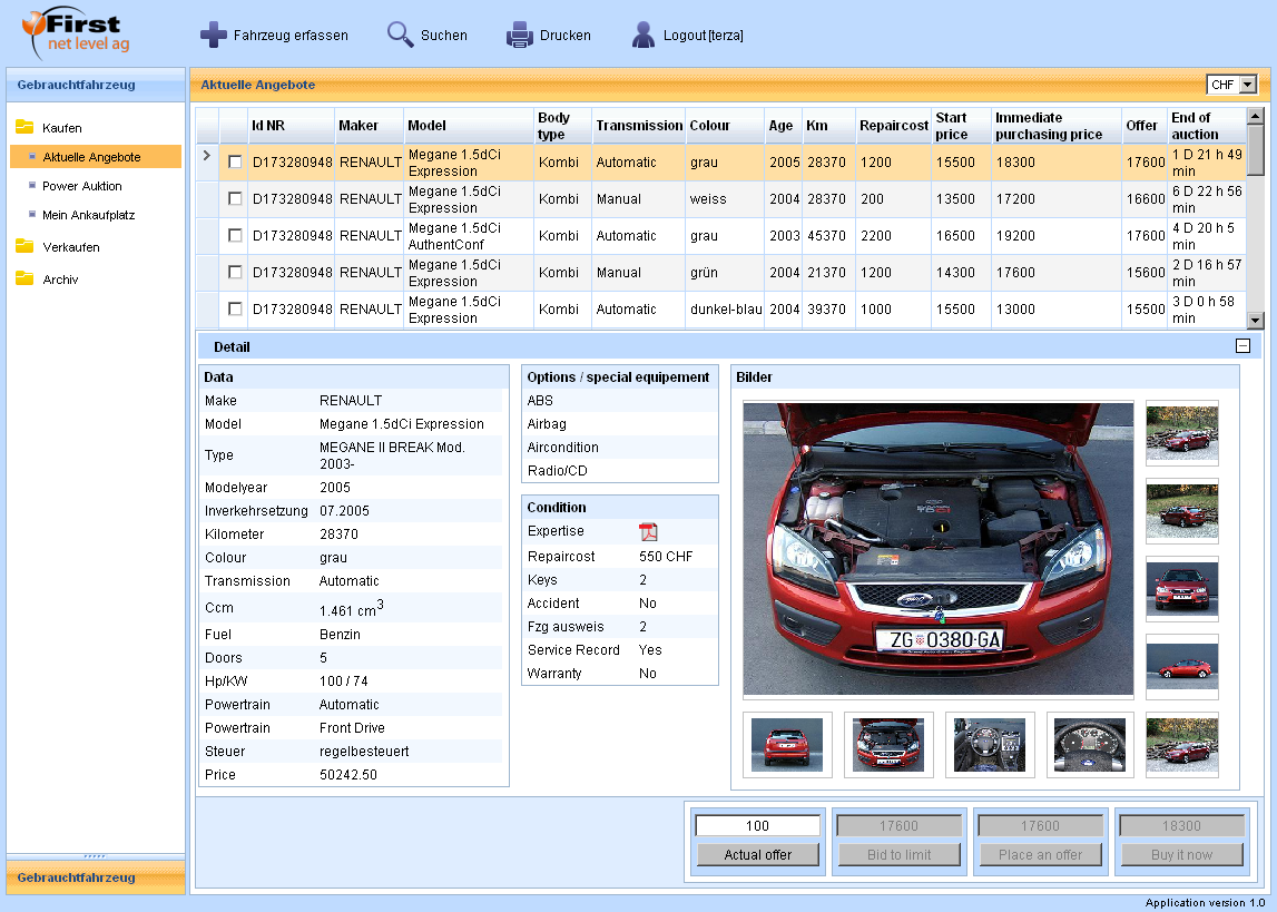 During 2oo8 I worked on the vehicle auctioning platform for a Swiss company.